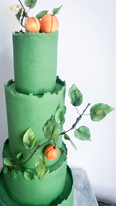 Wedding cake in pinks, green and orange for a fresh spring colour palette. My signature wedding cake style.