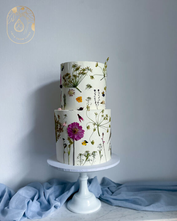 Explore the gallery for wedding cake inspiration. Bespoke wedding cakes are available in a range of finishes. I specialise in modern wafer paper designs, painted buttercream wedding cakes, elegant ganache and fondant designs, semi-naked cakes, Lambeth and vintage piped designs, and pressed edible flower cakes.
