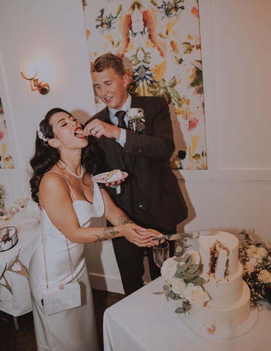 The three-tier design featured soft tonal icing, delicate lunar detailing and a custom-made moon cake topper that subtly referenced their band identity. The overall aesthetic was modern yet romantic, with a refined finish that felt perfectly in keeping with their cool, stylish celebration.